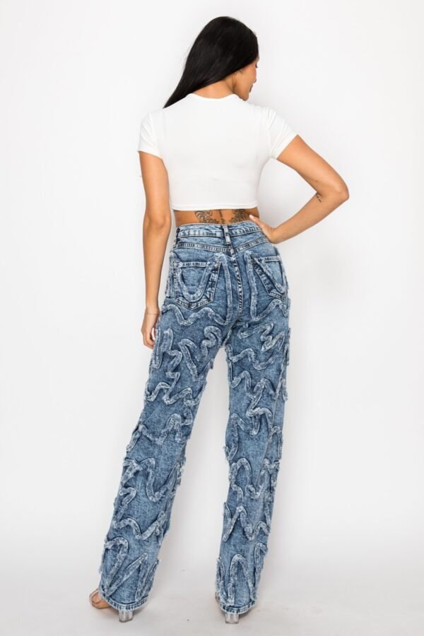 - These strips create a 3D textured pattern that looks abstract and organic. almost like denim vines or waves running all over the jeans.