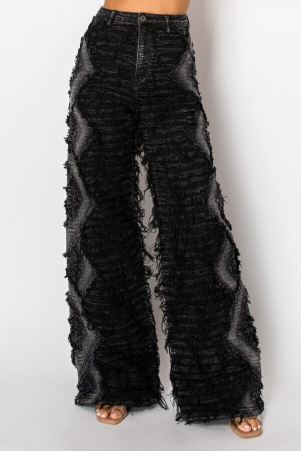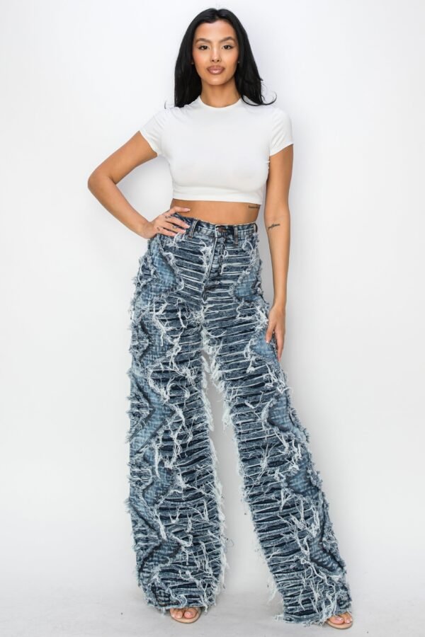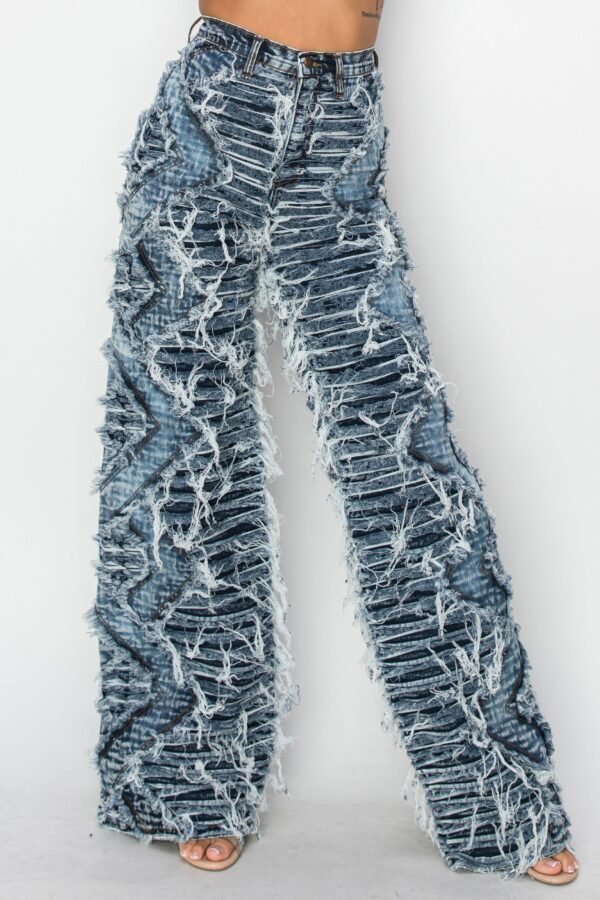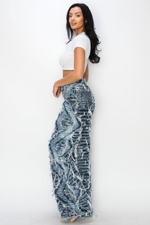 High Rise Dual Layer Wide Leg Shaggy Jeans W/ Helix Outseam Design