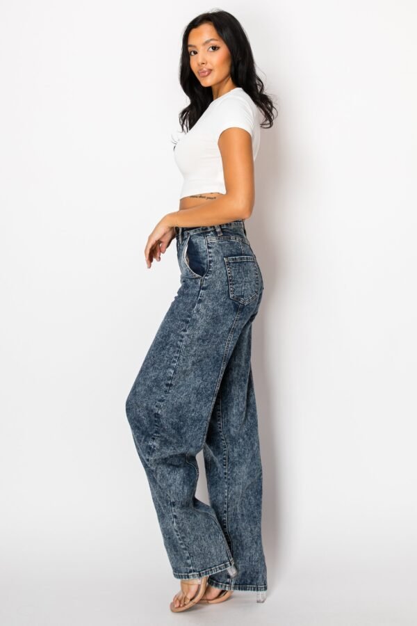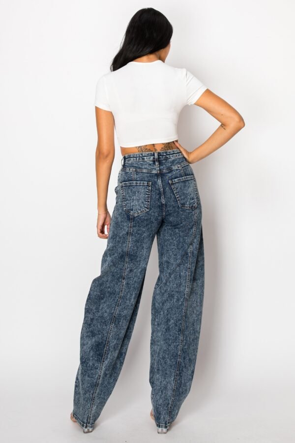 Mid Rise Acid Washed Barrel Shaped Jeans W/ Front & Rear Seams