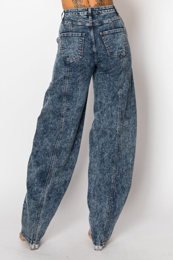 Mid Rise Acid Washed Barrel Shaped Jeans W/ Front & Rear Seams
