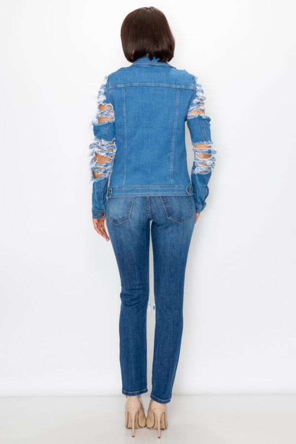Women’s Button Up Denim Jacket with Destroyed Sleeve